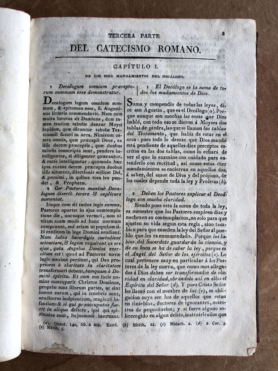 Catecismo // del Santo Concilio de Trento // Para párrocos, // ordenado por disposición // de San Pio V: // Traducido en Lengua Castellana // por el P. M. Fr. Agustin Zorita, Religioso Dominico, // segun la Impresion que de orden del Papa // Clemente XIII se Hizo en Roma // año 1761 // Tomo Segundo. // Con Licencia: // Barcelona: por Sierra y Martí. // 1819