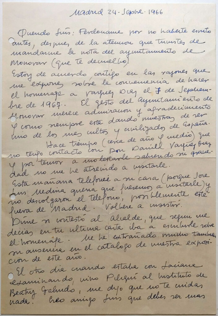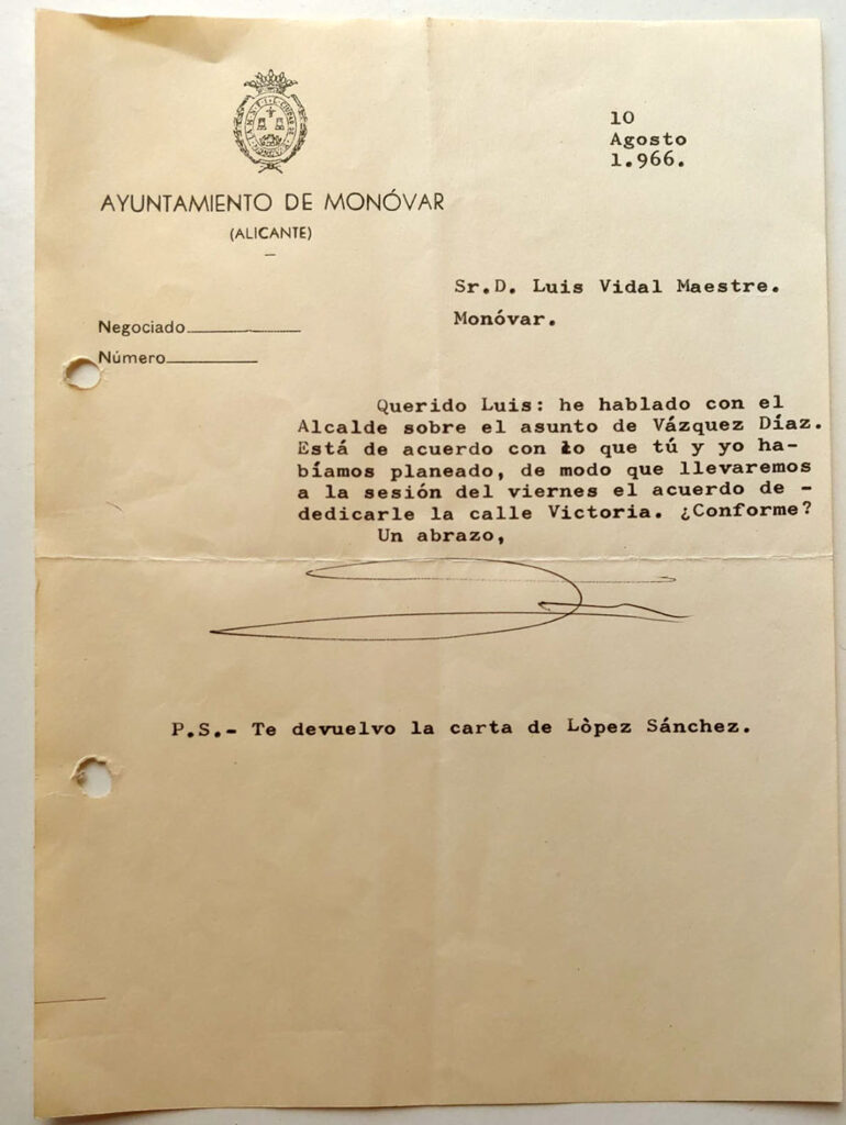 De José Luis López Sánchez a Luis Vidal Maestre 1966-09-24