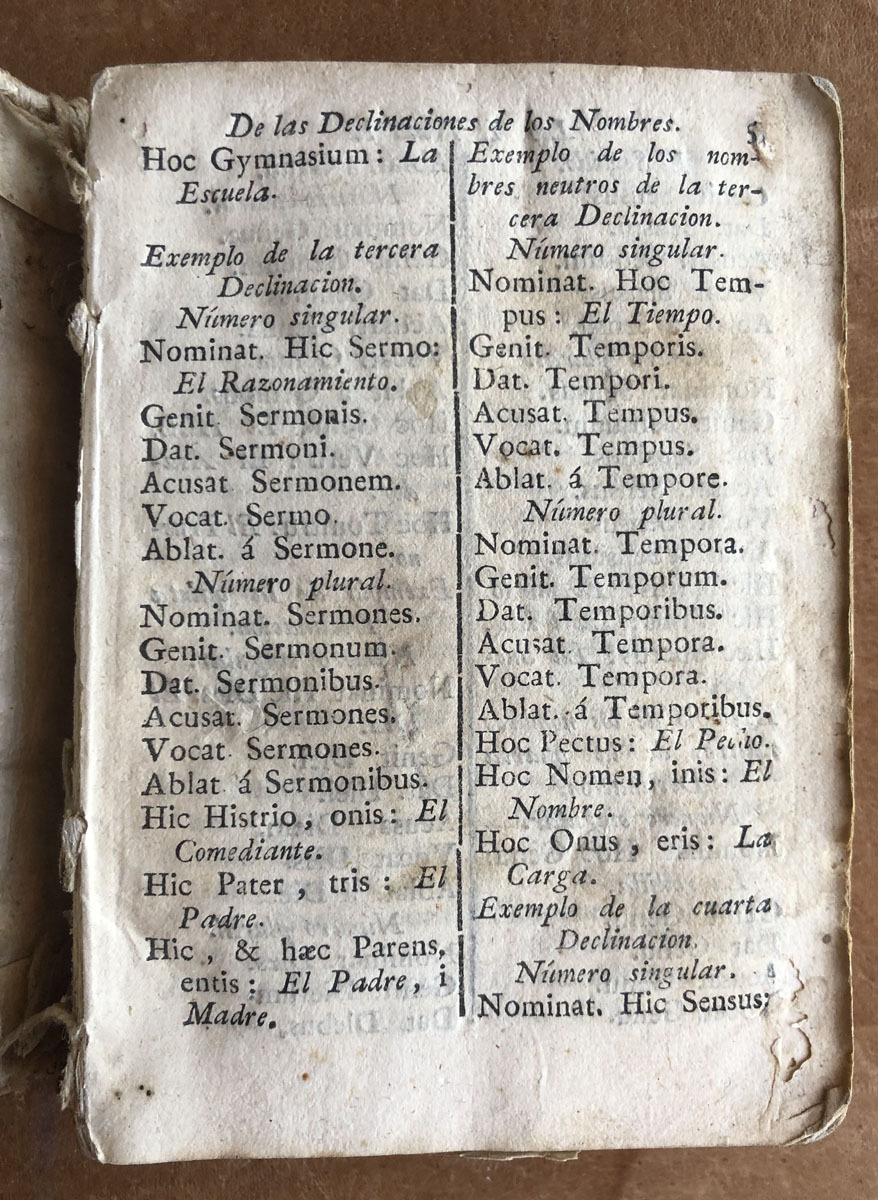 Gramática Latina // de Antonio Nebrija, // con la explicación I notas // del P. Agustín de S. Juan // Bautista de la Religión de las // Escuelas Pias. // Reducidas a compendio // por el P. Pedro de Santa // Maria Magdalena, de la misma // Año 1790 // En Valencia, i Oficina de D, Benito Monfort.