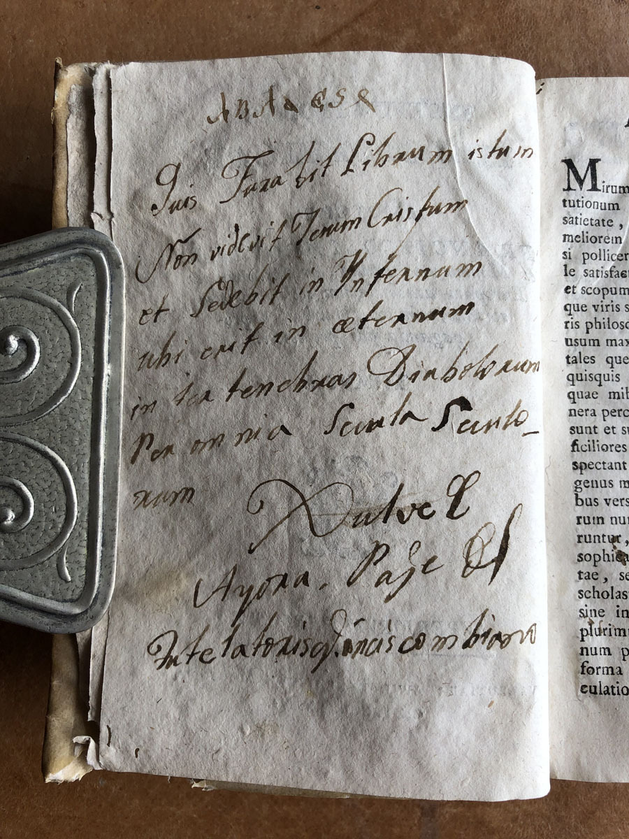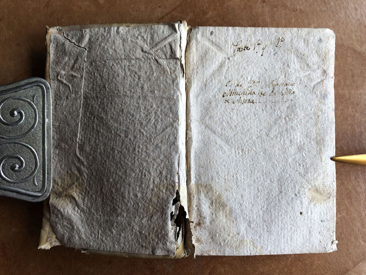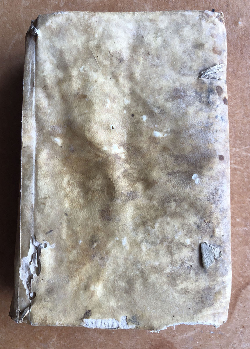 15x10cm. Pergamí 600pàg. Filigrana: un escut. Manoscrit: Es de Anastasio Minchilla de la villa de Ayora