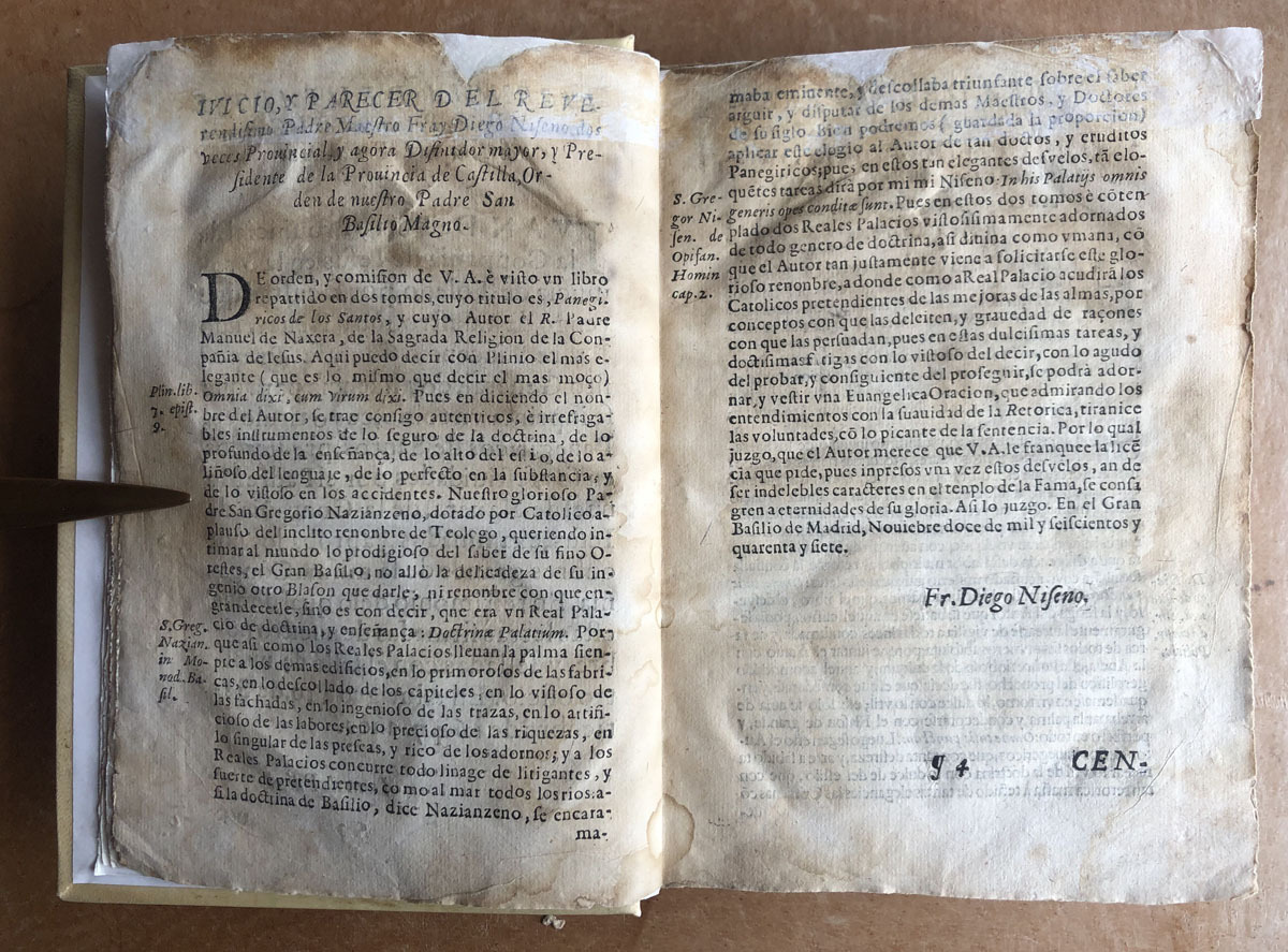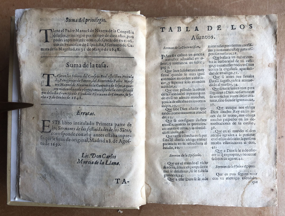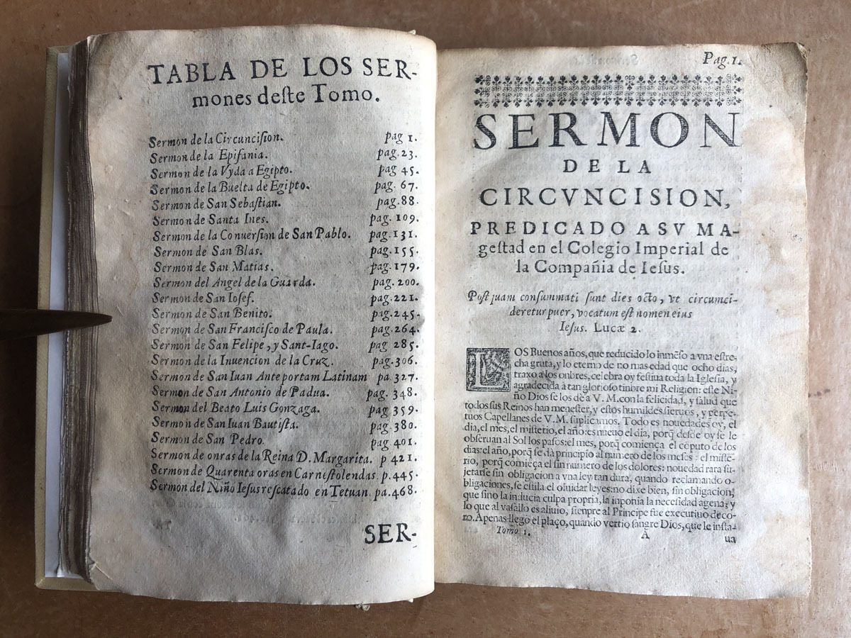 Dedícolos al Exmo. Sr. Don Luis Mendez de Aro, Marques del Carpio, Conde Duque de Olivares, Gran Canciller de las Indias, Gentilhombre de la Camara de su Majestad y su caballerizo mayor, comendador mayor de Alcala de los reales Alcázares de Sevilla. Nuevamente enmendados, y añadidos dos sermones del mismo autor.