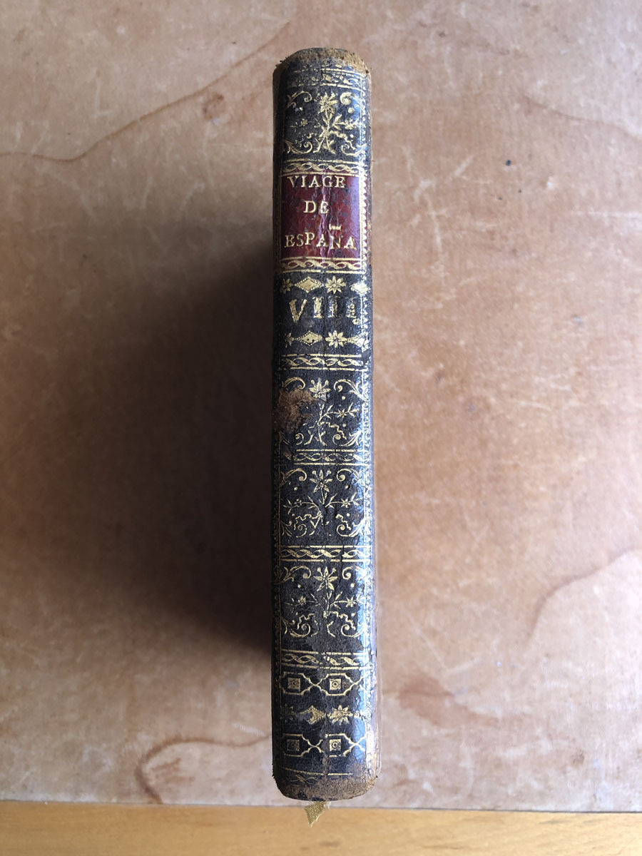 Viage // de España // en que se da noticia // De las cosas mas apreciables, y dignas // de saberse, que hay en ella. // su autor // D. Antonio Ponz, Secretario de S. M. y de la // Real Academia de San Fernando, individuo de la // Real de la Historia, y de las Reales Socie- // dades Bascongadas, y Económica // de Madrid, etc. // Dedicado al Principe Nuestro Señor. // Tomo Octavo.. // Trata de Madrid. // Segunda Edicion // Madrid MDCCLXXXIV. // Por D. Joachim Ibarra Impresor de Cámara de S.M. // Se hallará con los antecedentes en su Imprenta. // Con privilegio.